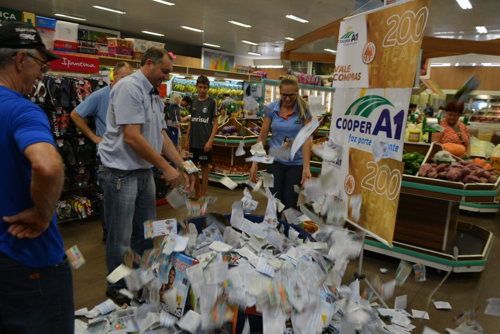 A Cooper A1 realizou, no sábado, dia 4 de fevereiro, o quarto sorteio da promoção 100 MIL EM PRÊMIOS, vinculada a Revista Cooper A1. Vinte e oito pessoas foram contempladas com vale compras no valor de R$200,00. Os sorteios aconteceram de forma simultânea na rede de lojas da Cooper A1. Até o fim da promoção, em março de 2017, serão 71 prêmios, incluindo um carro 0 quilômetros. O próximo sorteio será o sorteio do Carro 0km a se realizar no dia 04/03/2017 na matriz da Cooper A1 em Palmitos - SC Para participar da Promoção 100 MIL EM PRÊMIOS da Cooper A1, basta preencher corretamente, destacar e depositar nas urnas das unidades o cupom que está em uma das páginas da nova Revista Cooper A1. A publicação é distribuída mensalmente de forma gratuita nos municípios com unidades. Os clientes também recebem um cupom a partir de R$ 200 em compras nas lojas da cooperativa. Ganhadores 28 vale compras (Sorteio 04/02/2017) PALMITOS AGENOR PEREIRA PATRICIA SARTORI DANILO LUIZ NICOLAU ITAPIRANGA GUILHERME LAUSCHNER LUIS VOGEL IVAR JOSÉ RAMBO MONDAÍ EUCLIDES FERREIRA ELVA STAUDT LOTHAMMER DESCANSO NEUROZETE RUGERI CRISTIAS ANTOCEFF IPORÃ DO OESTE URSULA BUELTERMANN ROGERIO LORENCO THUMS SÃO JOÃO/TUNÁPOLIS LORENÇO FLACH FERNANDA CANDEIA VIER CAIBI/RIQUEZA VALTER PESAMOSCA SAULO LUIZ VALDUGA SANTA HELENA ELOY ROQUE DECOL SANDRA MARIA SPECHT PORTELLA DE LIMA RODEIO BONITO DEONILO MENEGOTTI IVAN ATONIO NEGRI PLANALTO EDSON ANDRE BATISTI ALEXANDRE ANDRE LIRA ALPESTRE OSMAR RODRIGUES DOS SANTOS EDSON ANDRÉ KREFTA VISTA GAÚCHA/NOVO TIRADENTES/PINHAL VERENA DURANTE OSMAR MACIEL ERVAL SECO LEONIR MANFIO MARCIA DA SILVA RODRIGUES