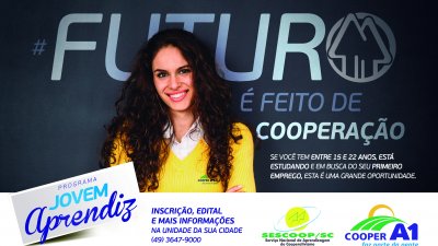 O programa foi implantado na Cooper A1 em 2013 em parceria firmada com o Serviço Nacional de Aprendizagem do Cooperativismo (Sescoop) e com CIEE, que dá o suporte pedagógico com o curso modular. Até agora, 120 jovens da região já passaram pelo programa na Cooper A1. A coordenadora do Setor Pessoal da Cooper A1 e responsável pelo programa, Rosilene Giebmeier explica que, além de atender a legislação federal, o Jovem Aprendiz Cooperativo, abre oportunidades e garante ao jovem a capacitação profissional como etapa do seu processo educativo. Segundo Rosilene, dependendo do seu desempenho, os aprendizes têm chances de serem efetivados no quadro funcional da Cooper A1.Oportunidade a jovens da região - O presidente da Cooper A1, Elio Casarin, afirma: “Levando em consideração as dificuldades encontradas para ingressar no mercado de trabalho, um curso profissionalizante como este pode significar a chance de obter uma formação profissional, que também é ferramenta de construção da vida pessoal e social destes jovens. A Cooper A1, que tem sua essência voltada à família e à formação de pessoas, tem satisfação em poder fazer a diferença na vida destes jovens”._________________________________________________